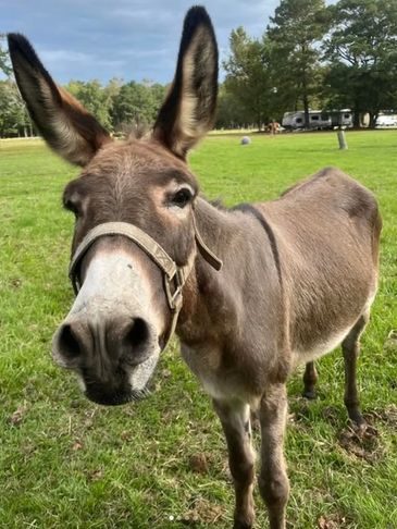 Rescue Story: Albert used to be a carriage horse in the swampy depths of Georgia, where PETA discovered he had Cushing's disease and could not sweat. If anyone has been to Georgia, you know you need to sweat to live there, let alone pulling hundreds of pounds in the heat! He had been working for the carriage service since he was a wee lad. In fact, they started him too young and the weight of his carriage pulling harness left a permanent indent where his muscles were still forming. PETA gave the company an ultimatum- put him on medicine or retire him. They wanted to get rid of him so fast that they sold him for $1 and he made his way here to North Carolina for cooler temperatures. His original rescuer did not want to pay for his medical burdens any longer and sold him to Jeszi for the same price, and he was her very first horse! He was boarded here at the campground with Leo, his best friend, who you could hear complaining from the pasture anytime Albert went out for a trail ride. On August 5th, 2024, Albert was found struggling to get back on his feet and the risk for colic was high. Throughout the day, several attempts were made to get him on his feet again while people at the campground gathered around to help and offer encouragement to him. After several hours, the vet finally arrived and confirmed he was in active heart failure and even if we were able to get him on his feet, he would merely collapse and suffer. Everyone said their goodbyes as the vet injected him, and Jeszi held his big precious head in her lap until he drifted away to his forever sleep. Albert was a giver, he always gave his love and his patience to everyone. He enjoyed other animals and it felt right to contact Possumwood Acres Wildlife Rescue to offer as much of his flesh as they could take to feed their raptors, so he could give himself to others one last time. He is now buried right behind Leo's pasture with a Weeping Willow tree planted above him in loving memory.